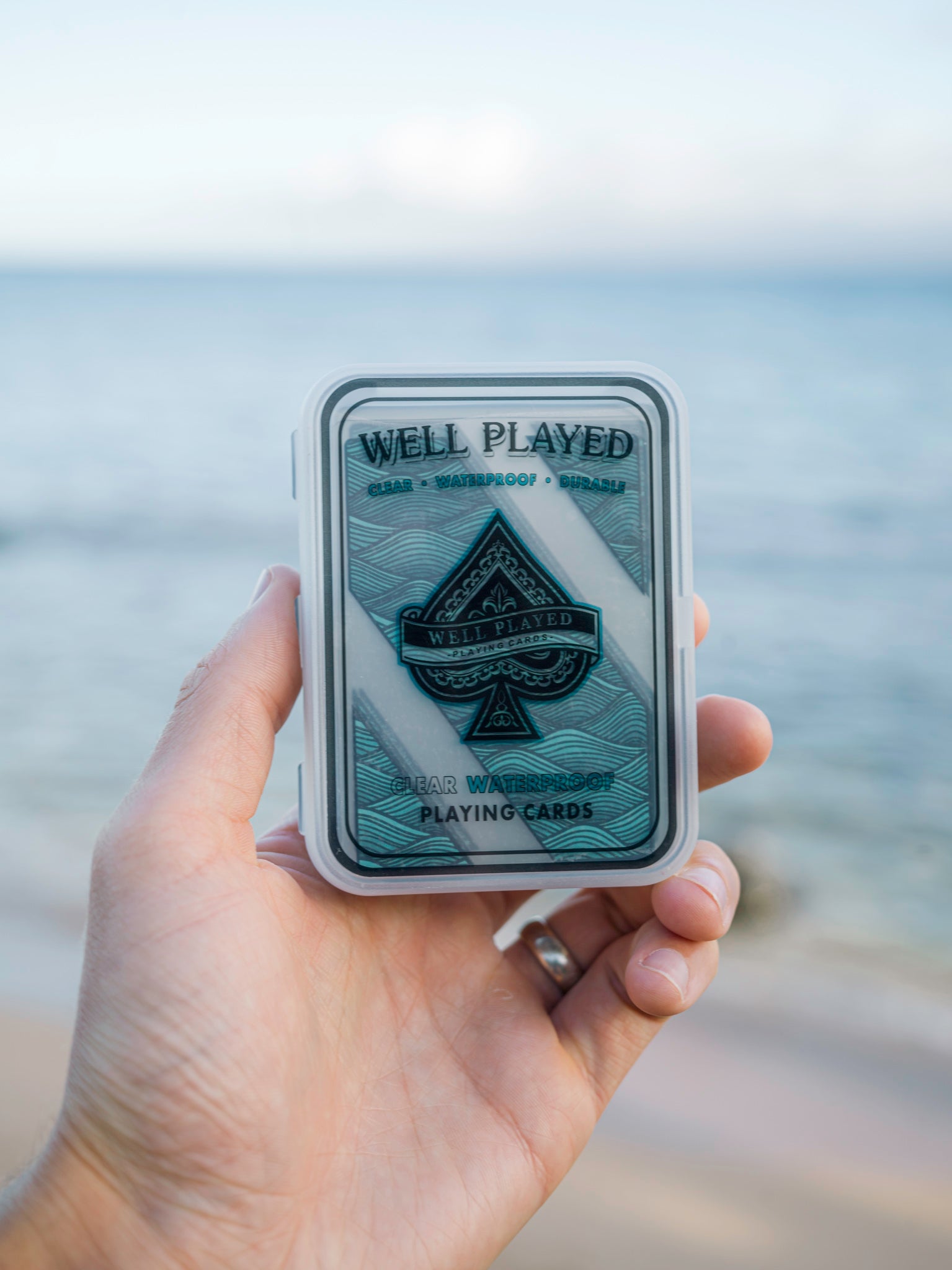 The Well Played cards are a high-quality option! I was able to replace the multiple beat-up decks I had collected over the years. Being waterproof, they have been great by the pool and are exactly what I was looking for to play inside or outside without worrying about damage. ~ Lizbeth